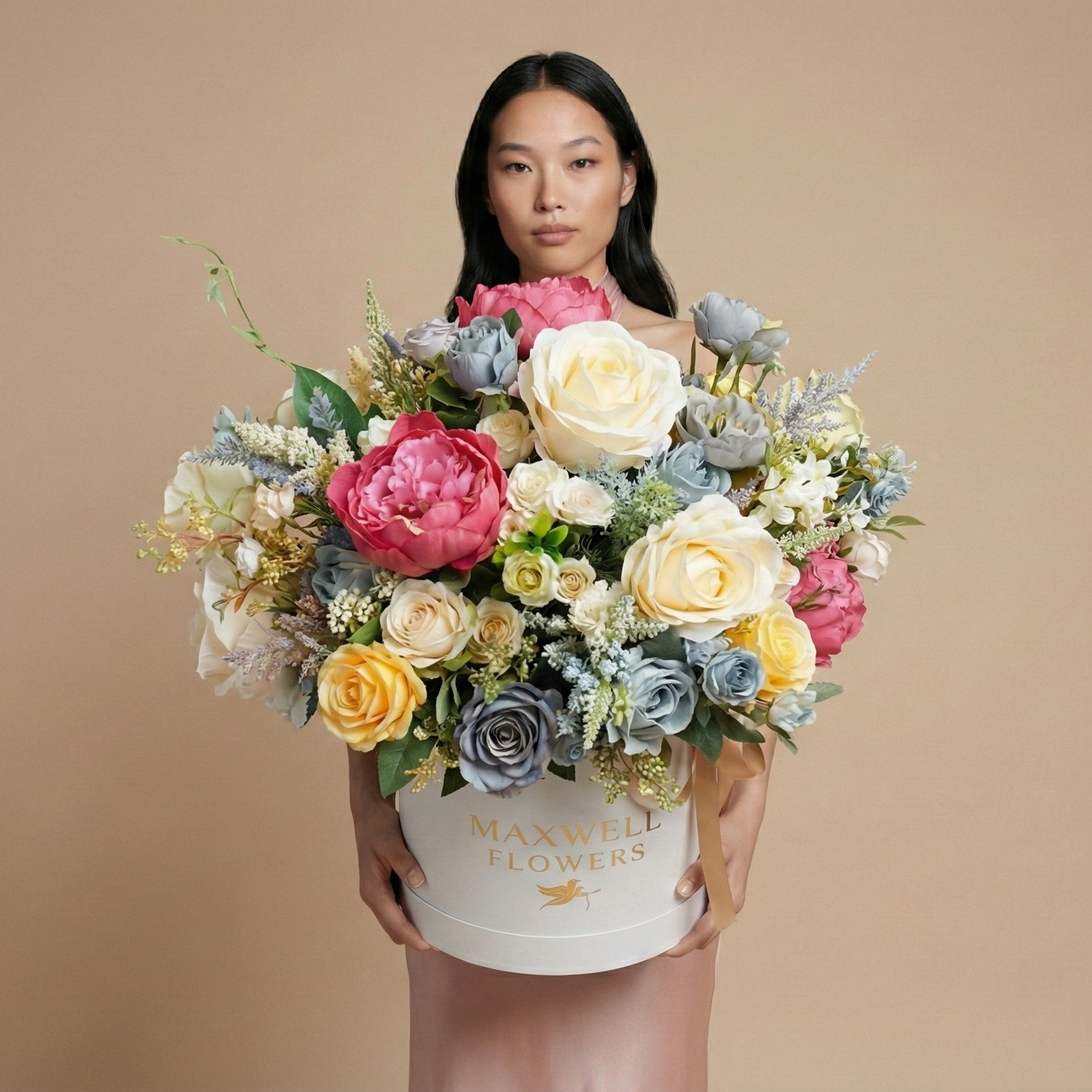 These flowers require very minimal maintenance—they do not need sunlight or water. Simply clean them occasionally using a soft brush or a hairdryer on a cool, low setting from a distance.