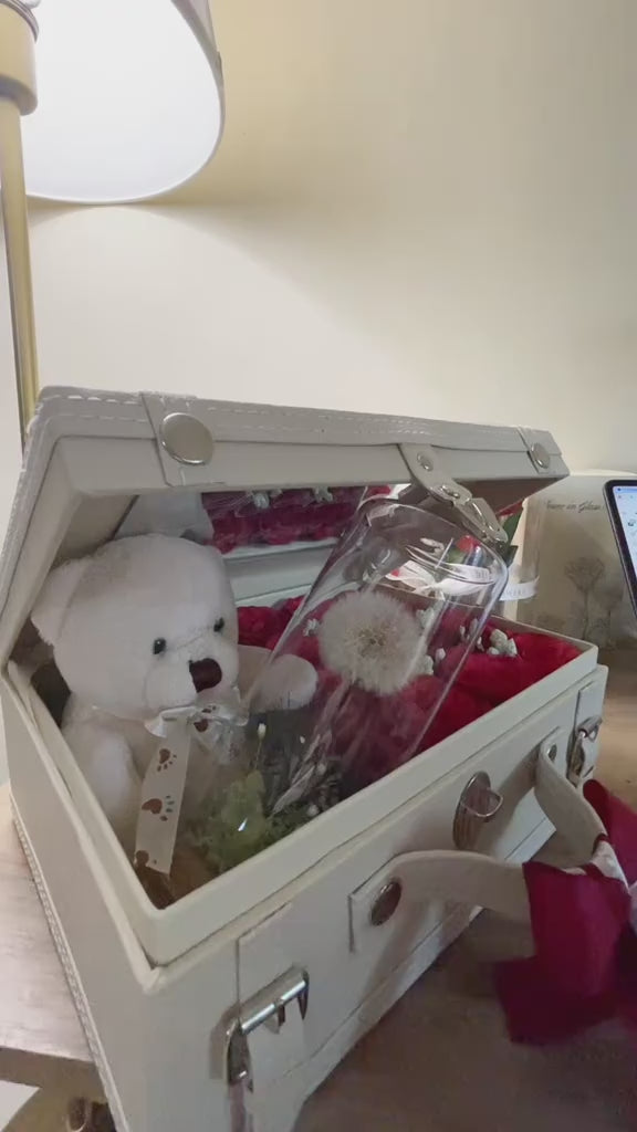 Treasure 12 Roses adalah hadiah bunga premium yang memadukan keindahan, kemewahan, dan makna cinta. Terbuat dari koper kulit imitasi berkualitas tinggi dengan box keras tebal, dilengkapi bunga wangi import yang telah mendapat banyak testimoni konsumen, aromanya tahan lebih dari 2 bulan.